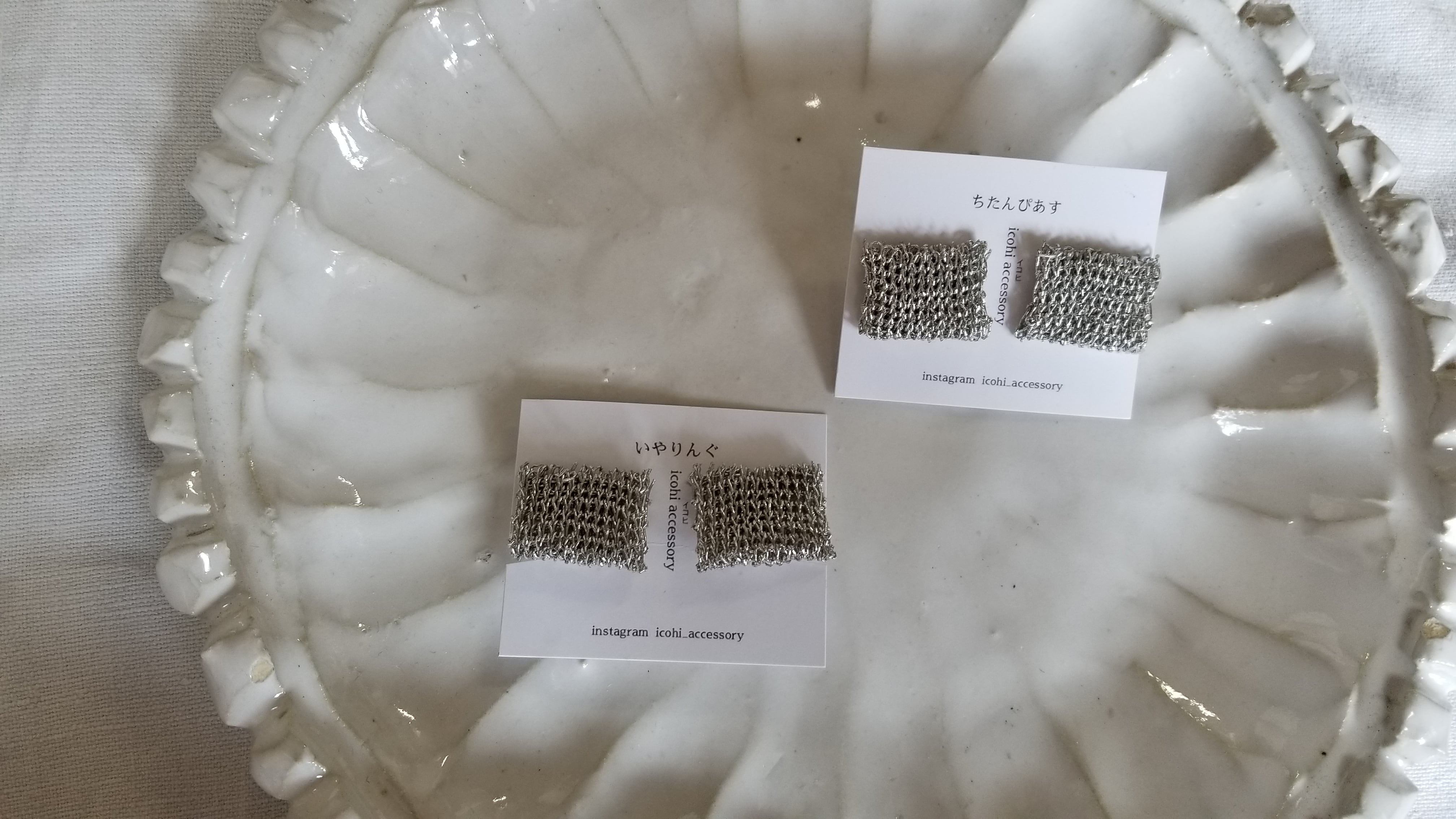 クサビカラビラのようなリボンテープを使用した軽いピアス、イヤリングです。