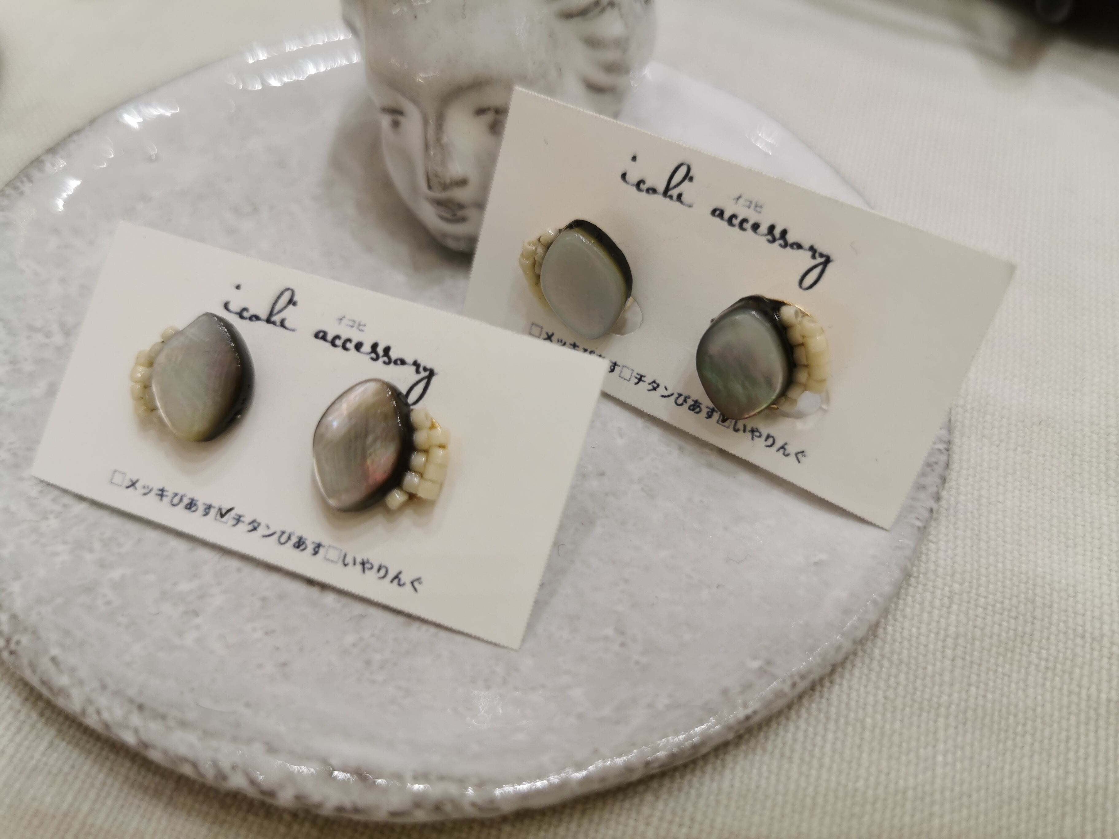 黒蝶貝とビーズを組み合わせたピアス、イヤリングです。 チタンピアス 蝶羽式イヤリング
