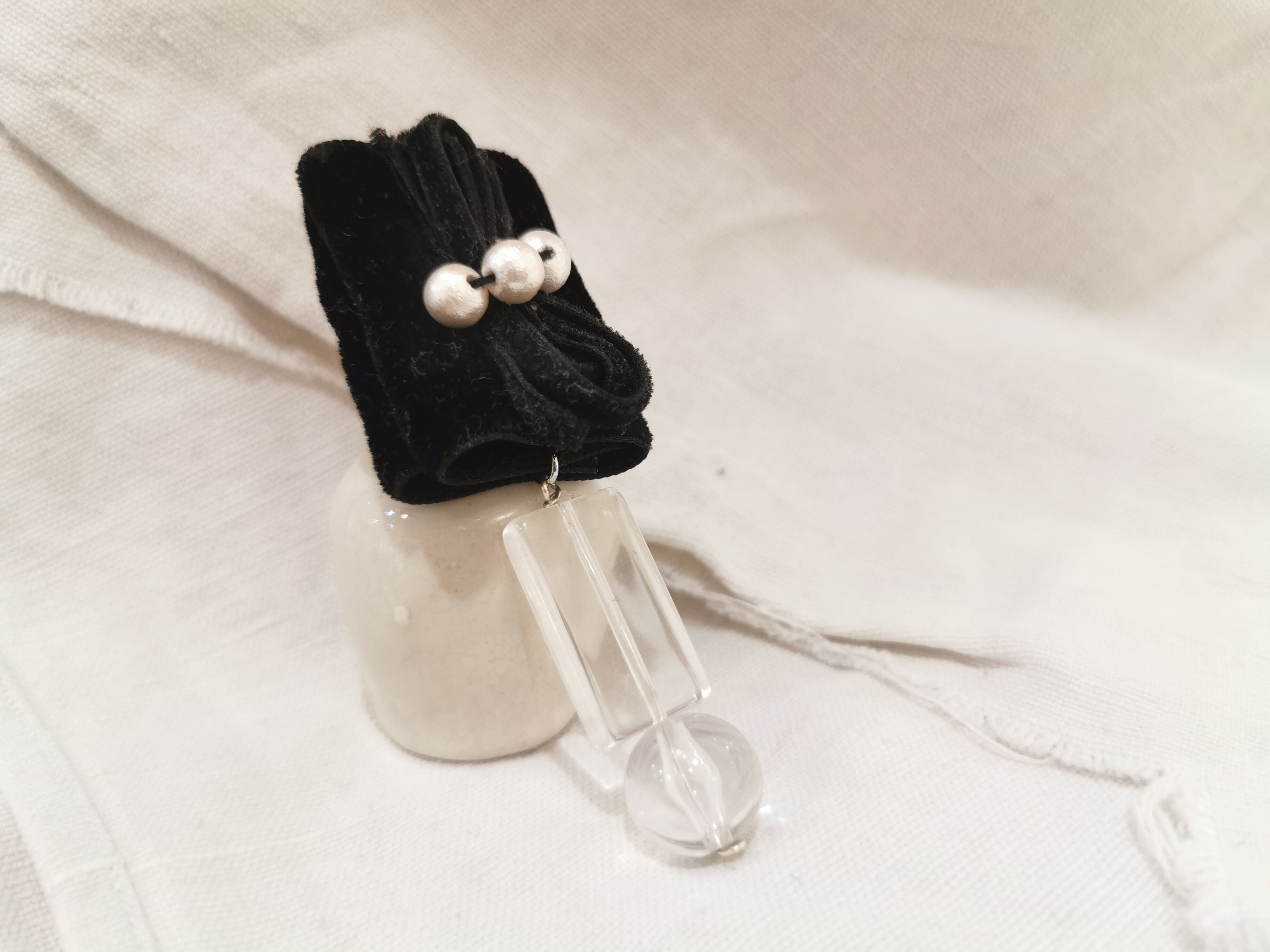 ベルベットの片耳ピアス、イヤリング。 クリア素材と合わせた大きめの存在感のあるアクセサリーです。 約9センチ×3.5センチ